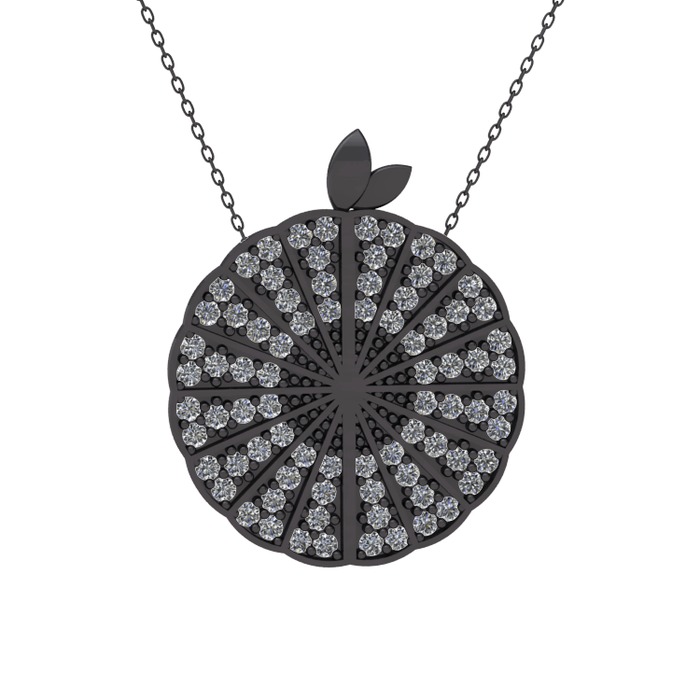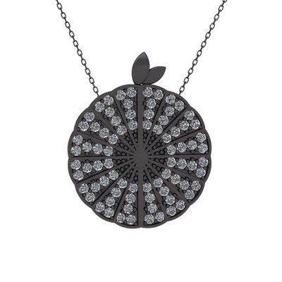 Pırlanta 925 ayar siyah rodyum kaplama gümüş kolye (1.2 karat, 40 cm gümüş rolo zincir)