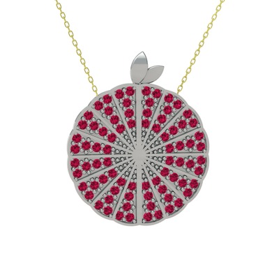 Rodolit garnet 18 ayar beyaz altın kolye (40 cm gümüş rolo zincir)