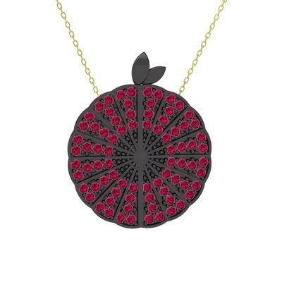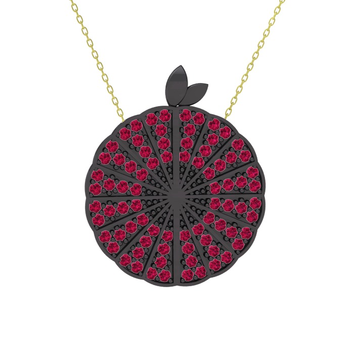 Rodolit garnet 925 ayar siyah rodyum kaplama gümüş kolye (40 cm altın rolo zincir)