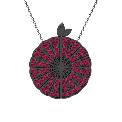 Rodolit garnet 925 ayar siyah rodyum kaplama gümüş kolye (40 cm gümüş rolo zincir)