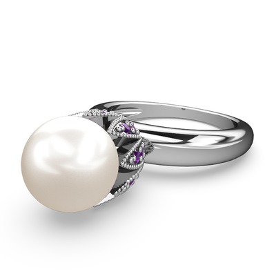 Inci ve ametist 18 ayar beyaz altın yüzük