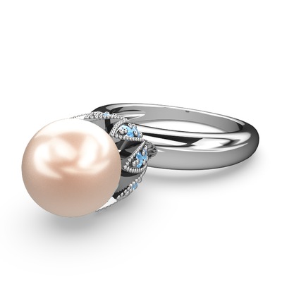 Pembe inci ve akuamarin 14 ayar beyaz altın yüzük