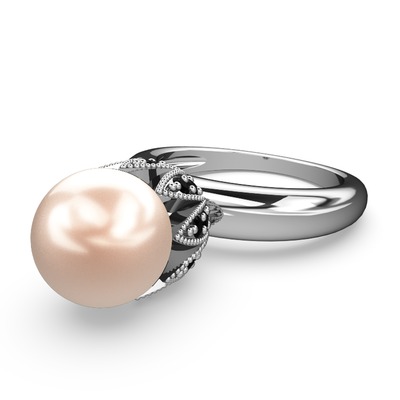 Pembe inci ve siyah zirkon 14 ayar beyaz altın yüzük