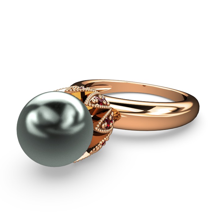 Siyah inci ve garnet 8 ayar rose altın yüzük
