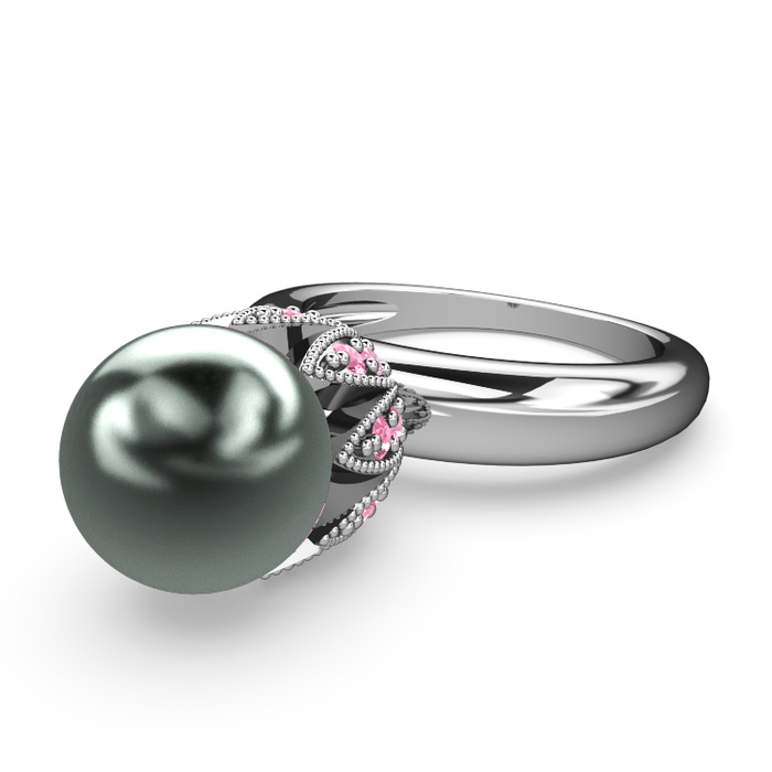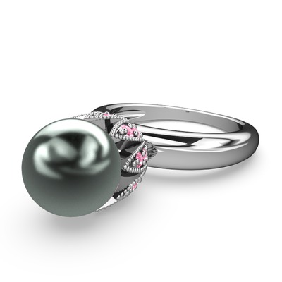 Siyah inci ve pembe kuvars 14 ayar beyaz altın yüzük