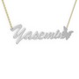 8 ayar beyaz altın kolye (7 karakterli el yazısı, 40 cm gümüş rolo zincir)