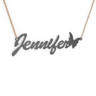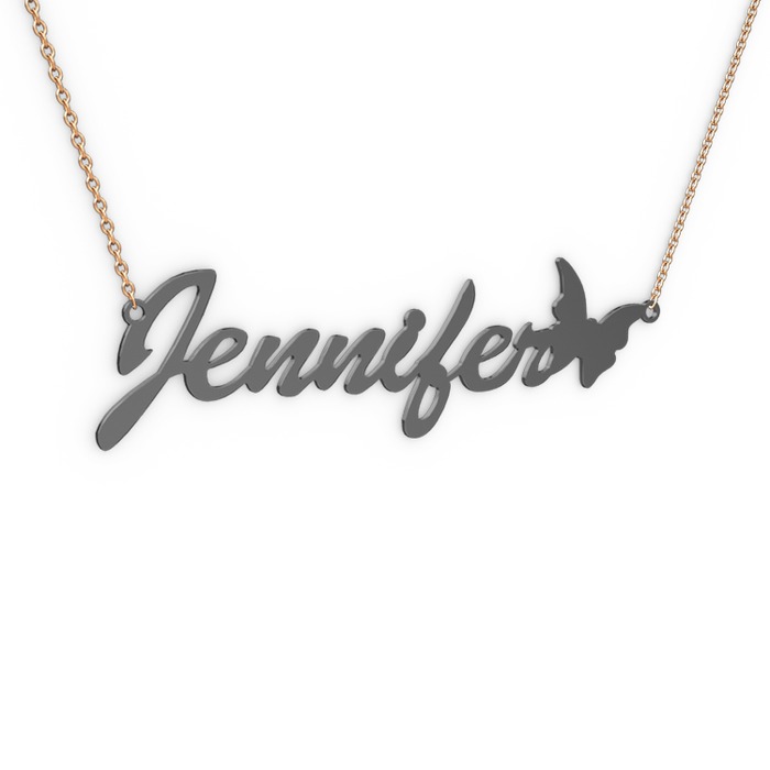 925 ayar siyah rodyum kaplama gümüş kolye (8 karakterli el yazısı, 40 cm rose altın rolo zincir)