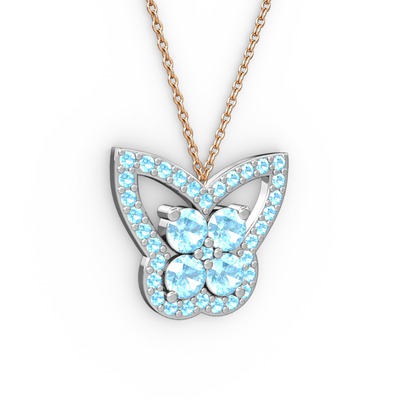 Akuamarin 18 ayar beyaz altın kolye (40 cm rose altın rolo zincir)