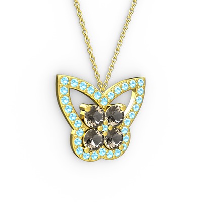 Akuamarin ve dumanlı kuvars 8 ayar altın kolye (40 cm gümüş rolo zincir)
