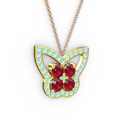 Akuamarin ve garnet 8 ayar altın kolye (40 cm gümüş rolo zincir)