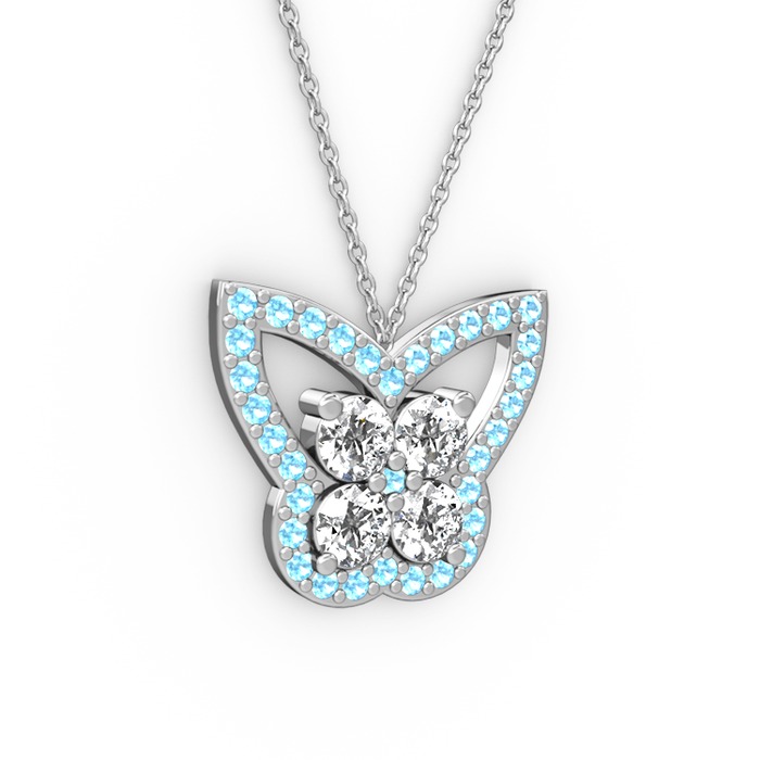 Akuamarin ve pırlanta 14 ayar beyaz altın kolye (0.96 karat, 40 cm gümüş rolo zincir)