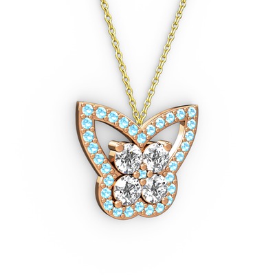 Akuamarin ve pırlanta 8 ayar rose altın kolye (0.96 karat, 40 cm altın rolo zincir)