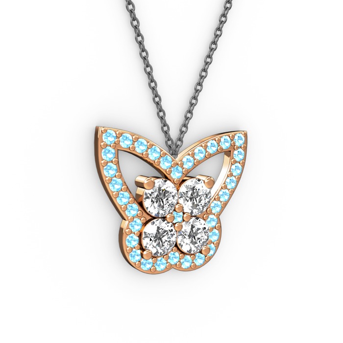Akuamarin ve pırlanta 8 ayar rose altın kolye (0.96 karat, 40 cm gümüş rolo zincir)