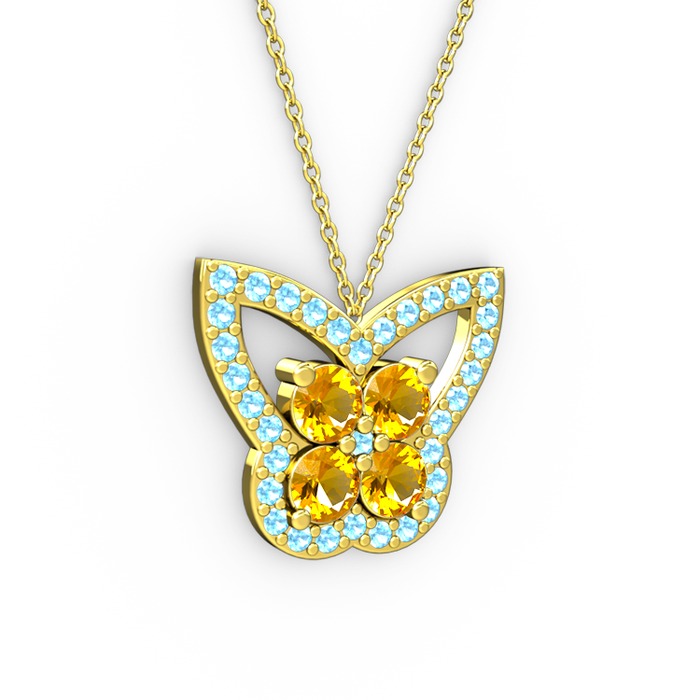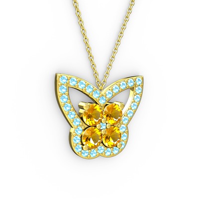 Akuamarin ve sitrin 925 ayar altın kaplama gümüş kolye (40 cm gümüş rolo zincir)