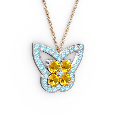 Akuamarin ve sitrin 925 ayar gümüş kolye (40 cm rose altın rolo zincir)