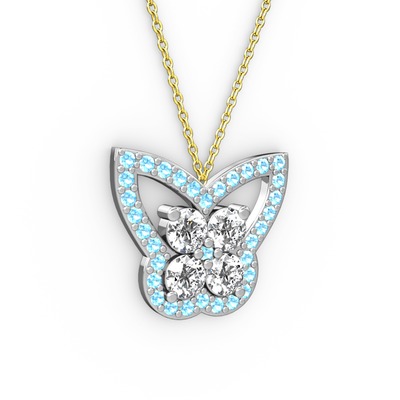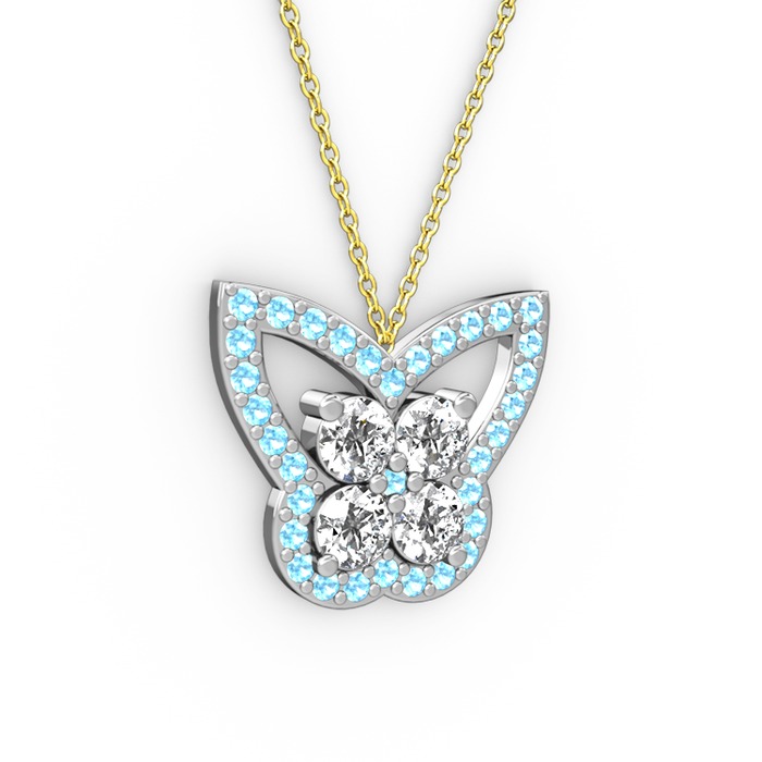 Akuamarin ve swarovski 14 ayar beyaz altın kolye (40 cm altın rolo zincir)