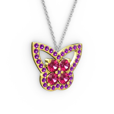 Ametist ve rodolit garnet 925 ayar altın kaplama gümüş kolye (40 cm gümüş rolo zincir)