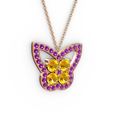 Ametist ve sitrin 8 ayar rose altın kolye (40 cm rose altın rolo zincir)