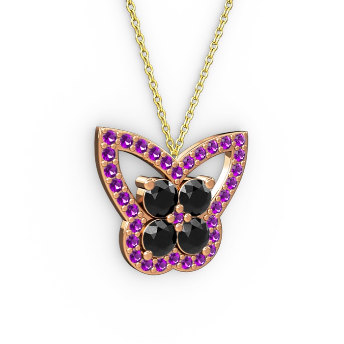 Ametist ve siyah zirkon 8 ayar rose altın kolye (40 cm altın rolo zincir)
