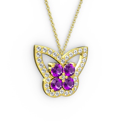 Beyaz zirkon ve ametist 925 ayar altın kaplama gümüş kolye (40 cm altın rolo zincir)