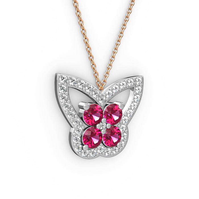 Beyaz zirkon ve rodolit garnet 14 ayar beyaz altın kolye (40 cm rose altın rolo zincir)