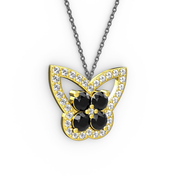 Beyaz zirkon ve siyah zirkon 14 ayar altın kolye (40 cm gümüş rolo zincir)