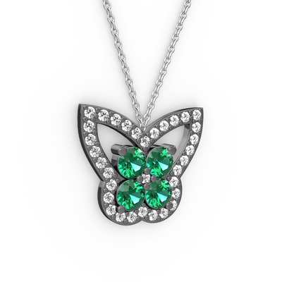 Beyaz zirkon ve yeşil kuvars 925 ayar siyah rodyum kaplama gümüş kolye (40 cm gümüş rolo zincir)