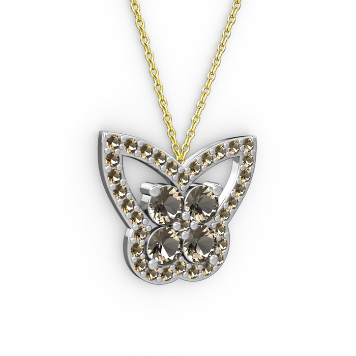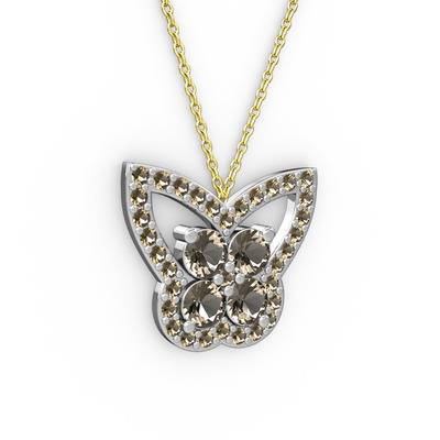 Dumanlı kuvars 8 ayar beyaz altın kolye (40 cm altın rolo zincir)