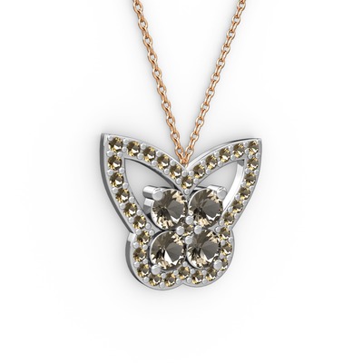 Dumanlı kuvars 8 ayar beyaz altın kolye (40 cm gümüş rolo zincir)
