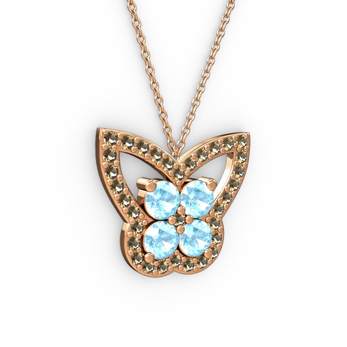 Dumanlı kuvars ve akuamarin 14 ayar rose altın kolye (40 cm rose altın rolo zincir)