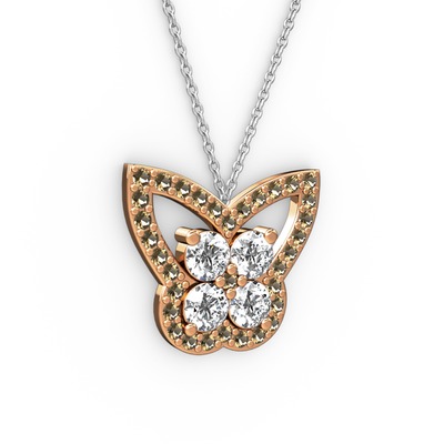 Dumanlı kuvars ve pırlanta 925 ayar rose altın kaplama gümüş kolye (0.96 karat, 40 cm beyaz altın rolo zincir)