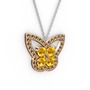 Dumanlı kuvars ve sitrin 925 ayar rose altın kaplama gümüş kolye (40 cm beyaz altın rolo zincir)