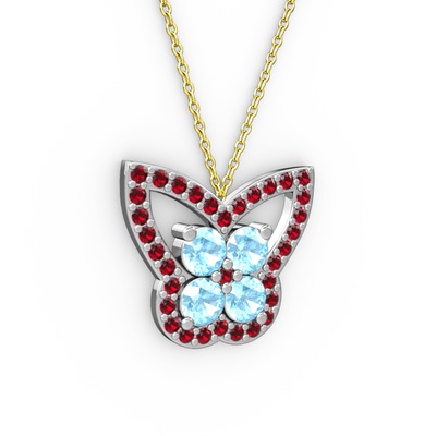 Garnet ve akuamarin 18 ayar beyaz altın kolye (40 cm altın rolo zincir)