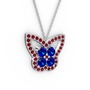 Garnet ve lab safir 925 ayar gümüş kolye (40 cm beyaz altın rolo zincir)