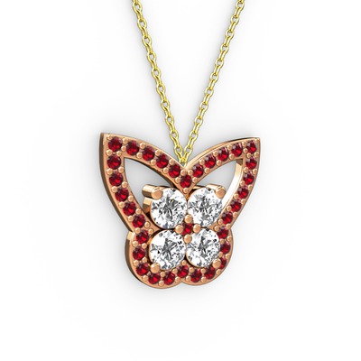 Garnet ve pırlanta 8 ayar rose altın kolye (0.96 karat, 40 cm altın rolo zincir)