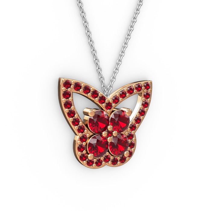 Garnet 925 ayar rose altın kaplama gümüş kolye (40 cm beyaz altın rolo zincir)