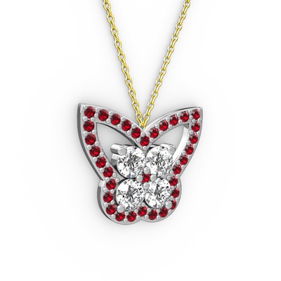 Garnet ve swarovski 18 ayar beyaz altın kolye (40 cm gümüş rolo zincir)