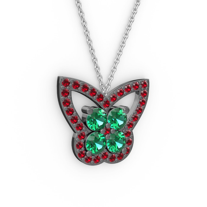 Garnet ve yeşil kuvars 925 ayar siyah rodyum kaplama gümüş kolye (40 cm beyaz altın rolo zincir)