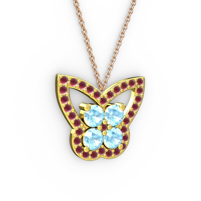 Kök yakut ve akuamarin 18 ayar altın kolye (40 cm rose altın rolo zincir)