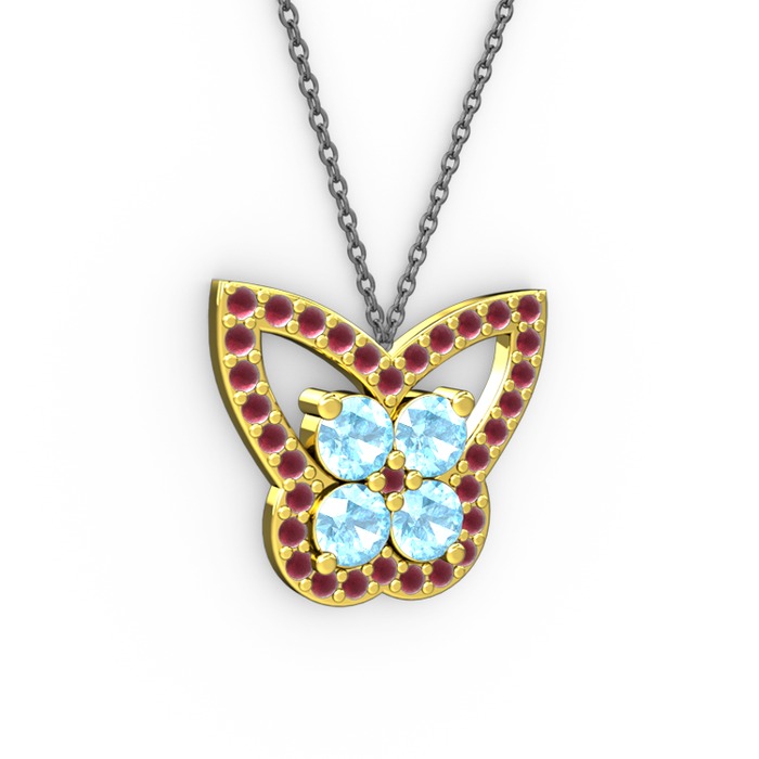 Kök yakut ve akuamarin 925 ayar altın kaplama gümüş kolye (40 cm gümüş rolo zincir)