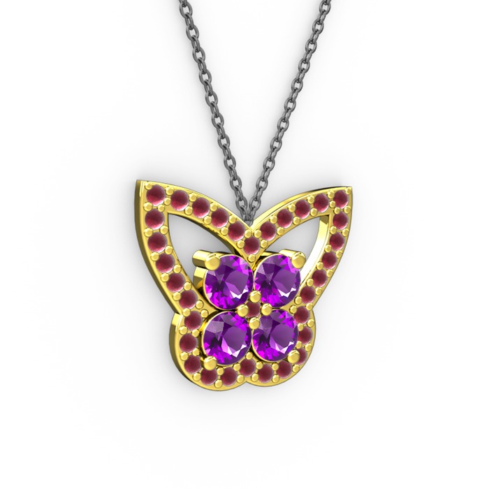 Kök yakut ve ametist 18 ayar altın kolye (40 cm gümüş rolo zincir)
