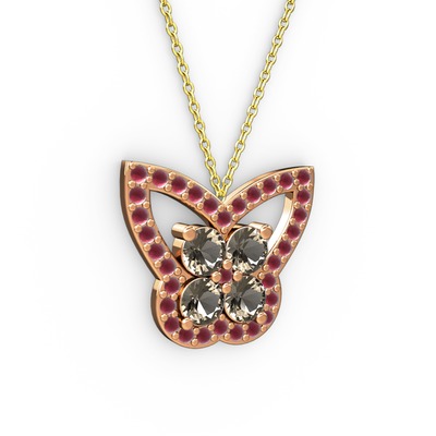 Kök yakut ve dumanlı kuvars 8 ayar rose altın kolye (40 cm gümüş rolo zincir)