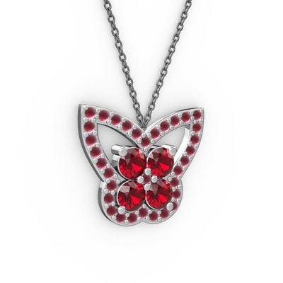 Kök yakut ve garnet 8 ayar beyaz altın kolye (40 cm gümüş rolo zincir)