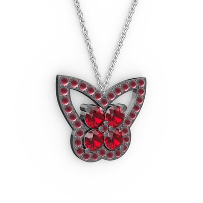 Kök yakut ve garnet 925 ayar siyah rodyum kaplama gümüş kolye (40 cm beyaz altın rolo zincir)