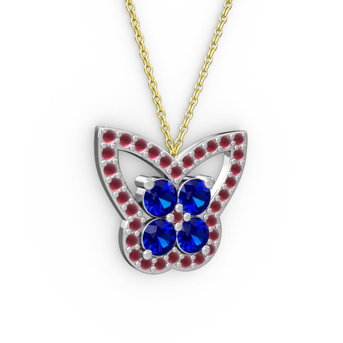 Kök yakut ve lab safir 8 ayar beyaz altın kolye (40 cm gümüş rolo zincir)