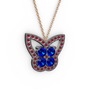 Kök yakut ve lab safir 925 ayar siyah rodyum kaplama gümüş kolye (40 cm rose altın rolo zincir)