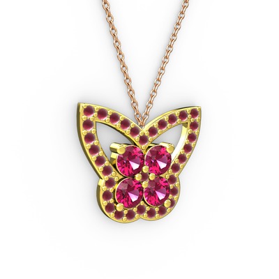 Kök yakut ve rodolit garnet 18 ayar altın kolye (40 cm rose altın rolo zincir)