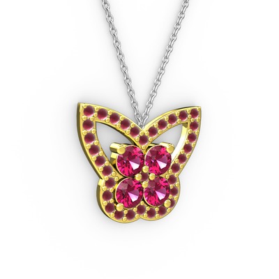 Kök yakut ve rodolit garnet 925 ayar altın kaplama gümüş kolye (40 cm beyaz altın rolo zincir)
