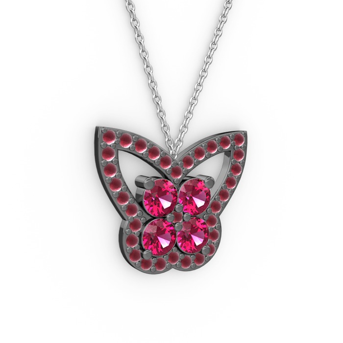 Kök yakut ve rodolit garnet 925 ayar siyah rodyum kaplama gümüş kolye (40 cm beyaz altın rolo zincir)