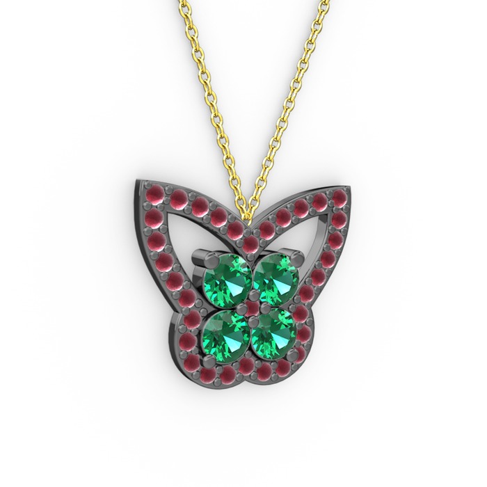 Kök yakut ve yeşil kuvars 925 ayar siyah rodyum kaplama gümüş kolye (40 cm altın rolo zincir)